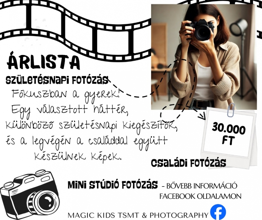 A mini stúdió fotózások általában 10-20.000 Ft között vannak, 15 percesek és 5 db retusált képet tartalmaznak. Ezek időpontját mindig a facebook oldalamon hirdetem meg, az aktuális háttérrel együtt.