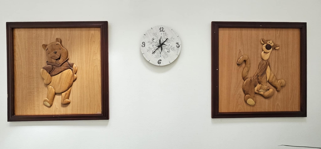 (Ilyen csodálatos fa képek díszitik a falakat. Imádom a meséket, és mennyire otthonosabbá varázsolják az intézményt.)