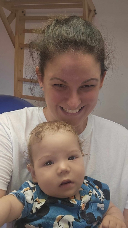 Második anyuka - ő az otthon legkisebb lakójával érkezett, aki jelentkezett tsmt-s felmérésre. Manuálterápiára jártak, mert kisfia balra nem fordította fejét egyátalán. Fiatalos temperamentuma van - ő talán, amennyi rálátásom van az életekre, a legszerencsésebb - olyan vonatkozásban, hogy milyen jövőbeli tervei vannak, hogy szeretnék édesapával karöltve véghezvinni terveiket. Mariannak ismét hálás vagyok - mert egy 4 hónapos kisbabának a tréning összeállítása, nem olyan, mint egy nagyobb gyerkőcnek. Leírtam elképzeléseimet, összeállítottam a tornát, és átbeszétük mi az, ami sok lehet még neki, és mi az, amit elbír egy ekkora kisbaba. Hogyan kövessék egymást a veszti ingerek, az anyateste feladatok stb. stb. - annyira örülök, hogy ezt is gyakorolhattam! A betanítás sokkal könnyebb volt, mint ahogy azt reméltem. Nagyon ügyesen kooperáltak együtt, és bár ők sokat vannak eltávon, mondta, hogy otthon is fogják a tornát csinálni - én is bízom benne.