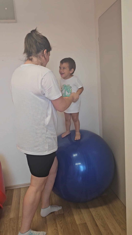 Harmadik gyermekem éppenhogy odaért, pont időben. Kértem fül-orr-gégészeti vizsgálatot - onnan érkeztek. Számomra ez is annyira pozitív. Hogy, amiket a szakvéleménybe leírtam, minek kellene utána járniuk - mennek és csinálják! Nagyon hálás vagyok ezért! ..és az eredmények is jönnek! Ahhoz képest, hogy a fél napot az orvosnál töltötték, mire sorra kerültek - utána hazaestek, majd rögtön jöttek tornázni - a kislány 1-1 feladatot hárított, és játszmázott, de anyuka pik-pak a helyére tette. Motiváció mondjuk az volt, ha most megmutatja nekem a tornát - délután már nem kell -és ekkor derült ki a jövő heti intézmény program is. DE!! Nagyon jó kis motiváció volt! Szépen próbálkozik a szinkronokkal már, ahhoz képest hogy még a plédeseket is hárította betanításkor, most csak 2 feladatot, ez is szuper eredmény! A feladatok kivitelezésébe pár dogot javítottam, hogy azért ne teljesen passzív legyen, hanem kezdje el aktivizálni magát a kislány. Nála úgy gondolom mélyről indulunk, de reményeim szerint ha csinálják, sok mindenben változást érünk el! Kapnak pszichológiai megsegítést is, ezért nagyon bízom bennük!